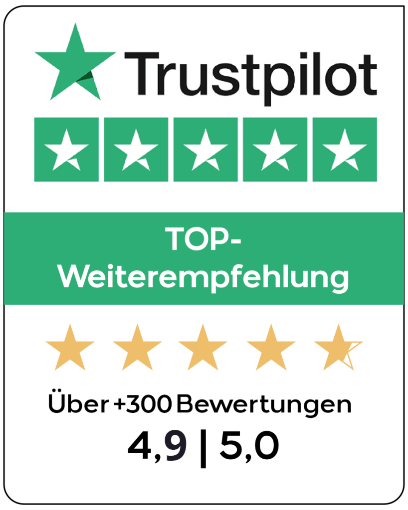 Bewertungen von über 350 zufriedene Kundinnen und Kunden mit durchschnittlich 4,9 von 5 Sternen – dafür sagen wir Danke!